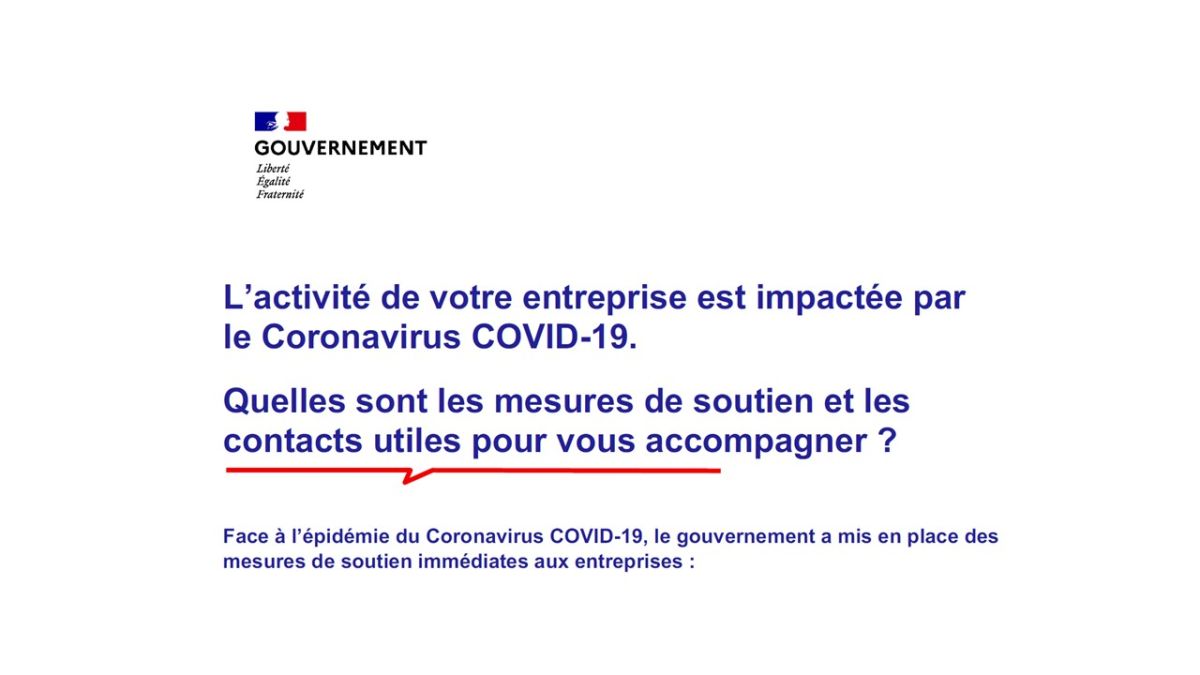 Dans le contexte actuel de ralentissement de l’économie, les pouvoirs publics se mobilisent pour accompagner les chefs d'entreprises, les commerçants et les agriculteurs dans la gestion de crise liée au Coronavirus / COVID-19.
