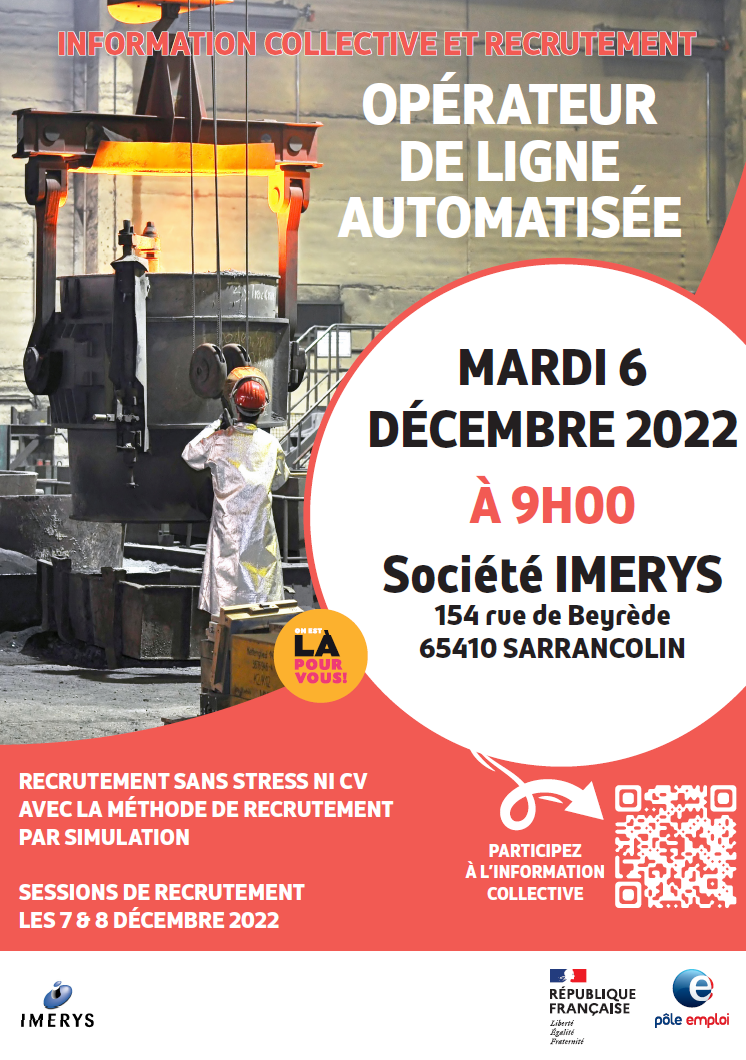 Mardi 6 décembre 2022 à 9h : recrutements à l'usine IMERYS de Beyrède