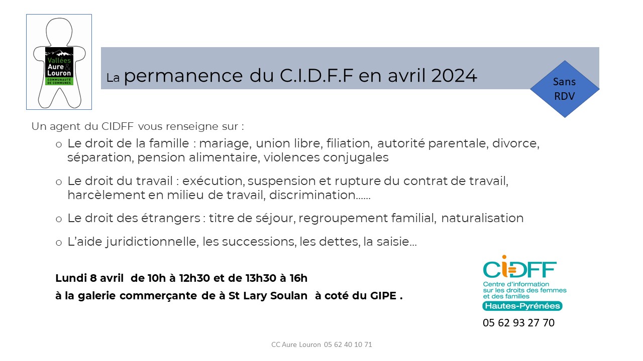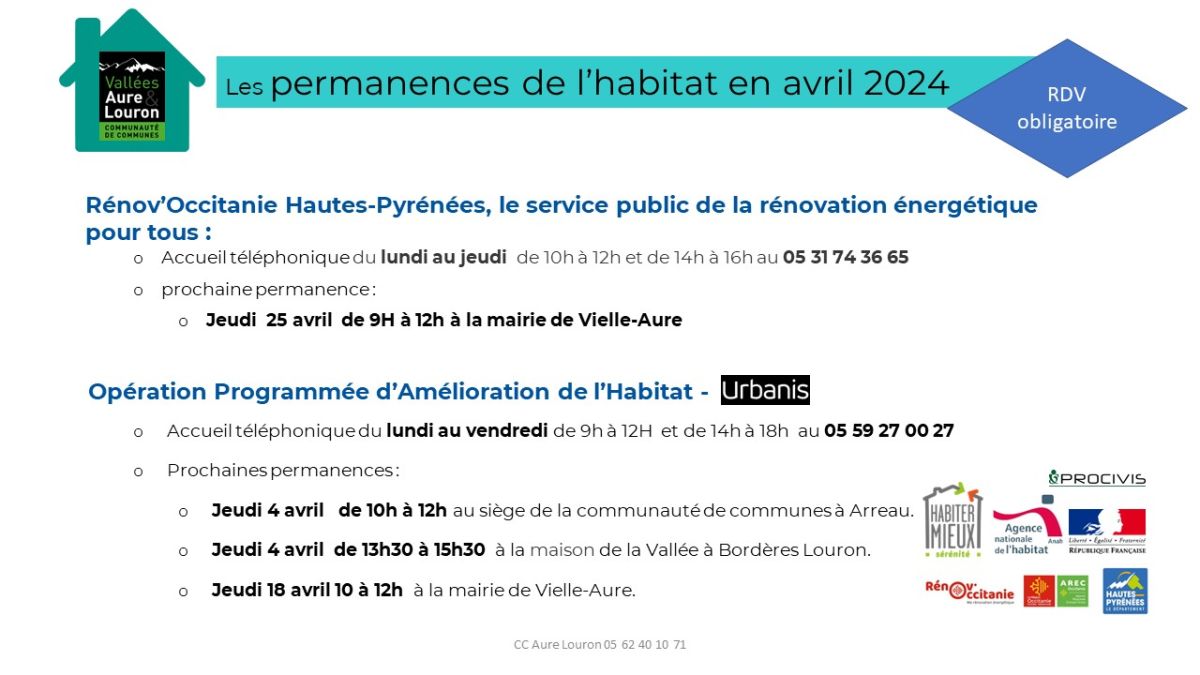 Les permanences en Avril 2024 : Renov'Occitanie, OPAH, France Services, Maison du travail saisonnier, CIDDF
