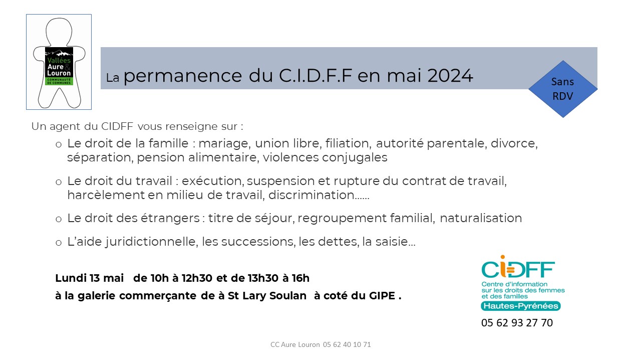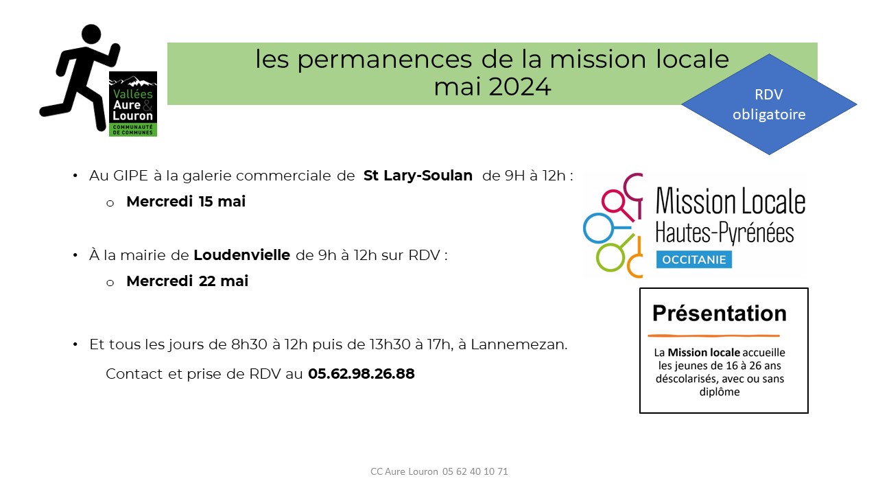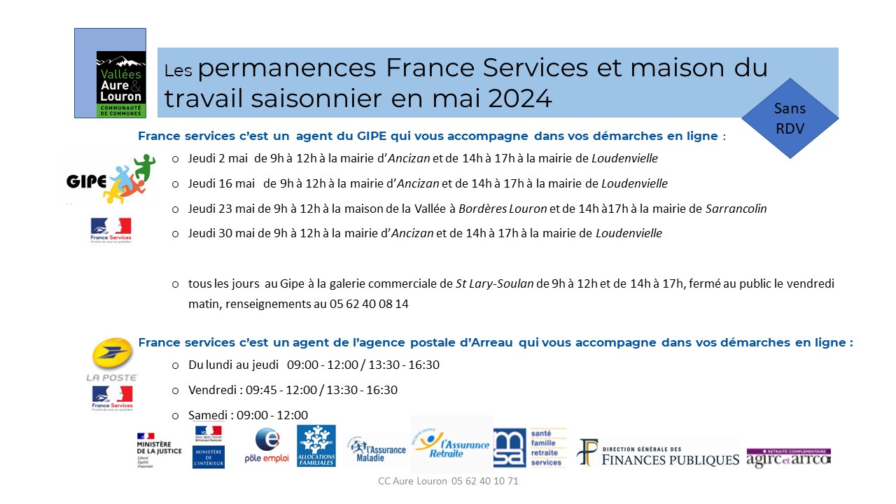 Les permanences en Mai 2024 : Renov'Occitanie, OPAH, France Services, Maison du travail saisonnier, CIDDF, Mission Locale