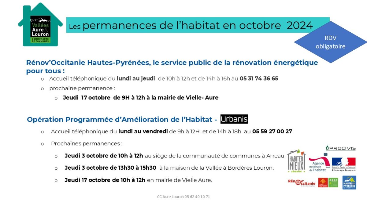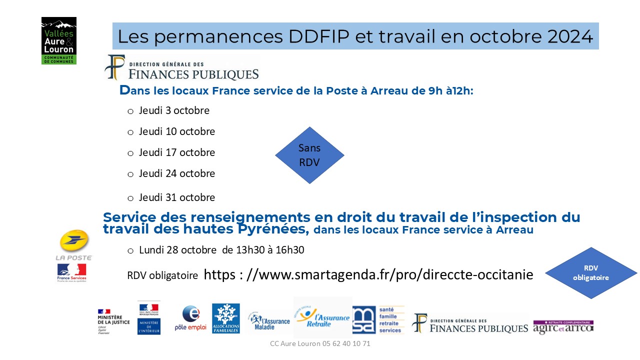 Les permanences en Octobre 2024 : Renov'Occitanie, OPAH, France Services, Maison du travail saisonnier, CIDDF, Mission Locale
