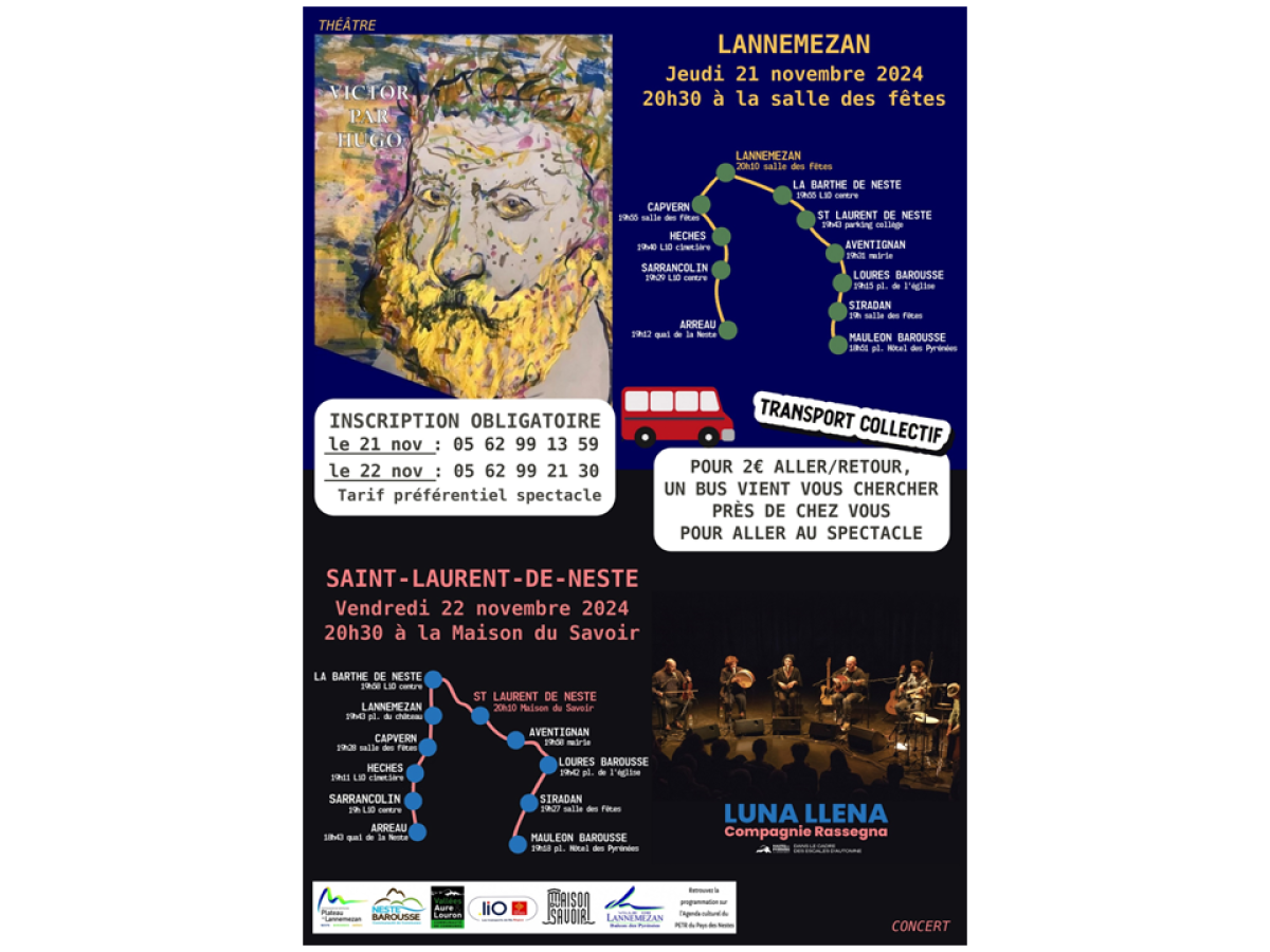 Navette culturelle intercommunautaire : Théâtre le jeudi 21 Novembre & Concert le vendredi 22 Novembre