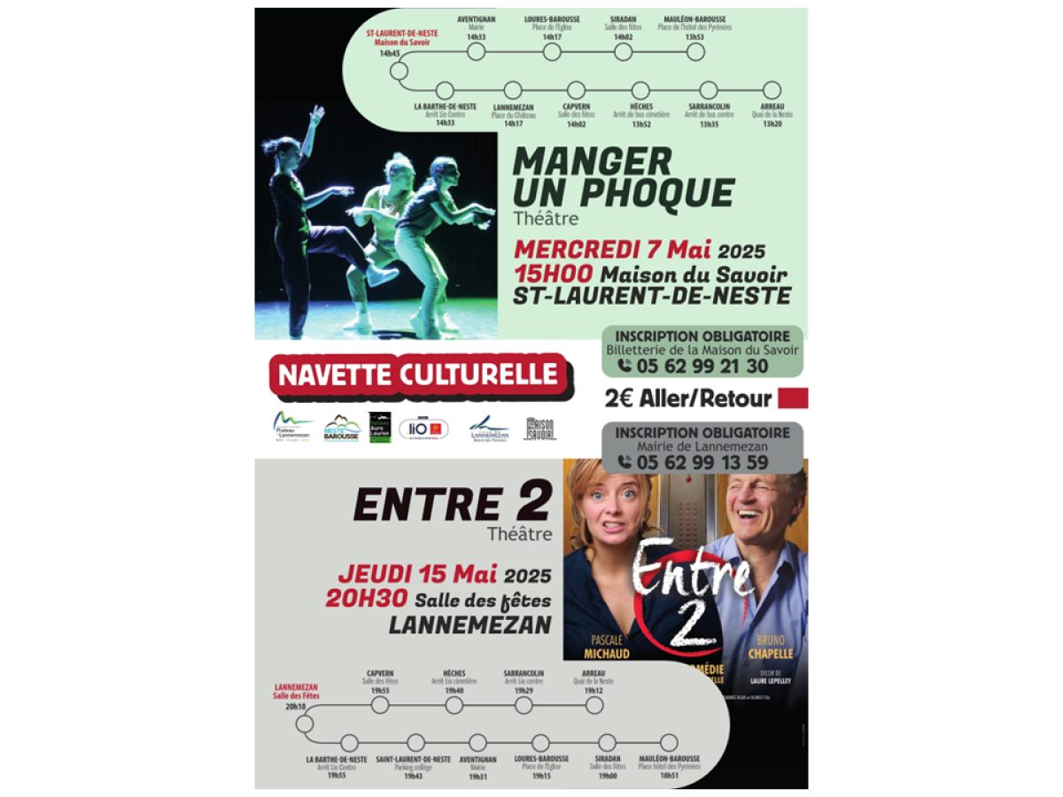 Navette culturelle intercommunautaire : Théâtre le mercredi 7 Mai et le jeudi 15 Mai